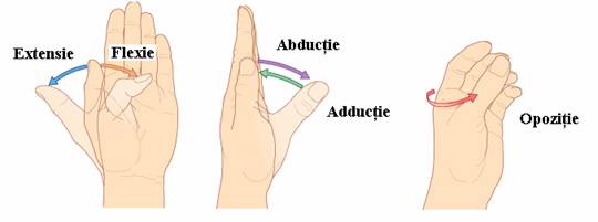 o miscare unghiulara, prin care varful policelui descrie un arc de 1200 intre punctul cel mai indepartat de axul longitudinal al mainii si un punct care depaseste acest ax in directie mediala;