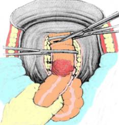 Fig. 1 - Operatia Hartmann - eliberarea segmentului distal (6)