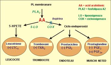 Mesagerii extracelulari apar sub actiunea fosfolipazei A2 care elibereaza din membrana acidul arahidonic, precursor al derivatilor eicosanoizi (mediatori ai inflamatiei). Acidul arahidonic poate fi metabolizat pe calea ciclooxigenazei, rezultand prostaglandinele sau pe calea lipooxigenazei, rezultand leucotrienele.