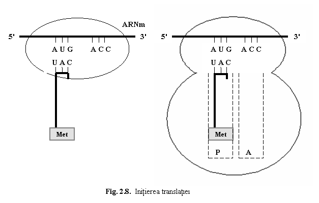 apoi ARNm si primul ARNt "incarcat" cu primul aminoacid metionina formeaza complexul