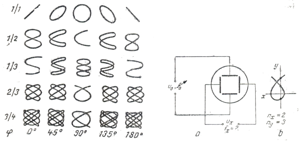 m si n fiind numere intregi, se obtin figuri a caror forma depinde de raportul frecventelor celor doua oscilatii si de defazajul dintre ele (figura 12).