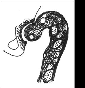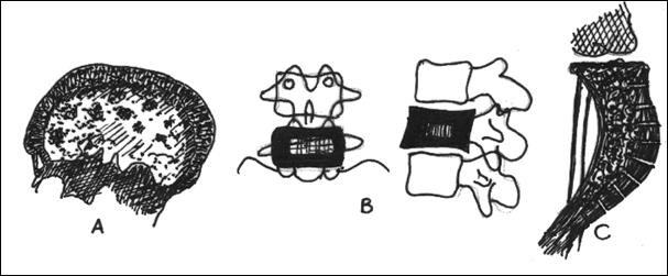 realizand aspect de "vertebra cu chenar" ; C - tibie incurbata,