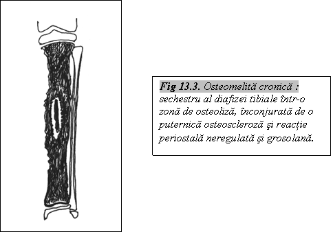 coexista de obicei cu zone osteolitice, sechestre si periostoze;
