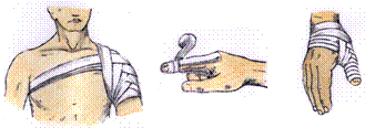 - aplicarea se face cu ambele maini: se tine sulul de fasa in mana dreapta, prins intre police si cele patru degete, iar capatul initial se prinde cu mana stanga);