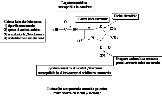 Pe langa clasificarea structurala a penicilinelor, o importanta foarte mare pentru practica clinica o reprezinta clasificarea lor farmacologica. Fiecare element structural specific peniclinelor contribuie atat la raspunsul terapeutic, cat si la stabilitatea chimica si/sau enzimatica a moleculei, absorbtie etc. (figura 6).