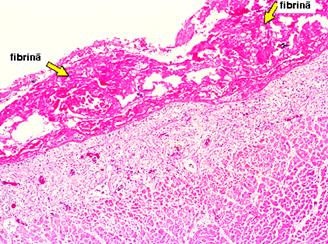 ingrosare de pericard cu eventuale depozite de fibrina (uneori libere in lichid).