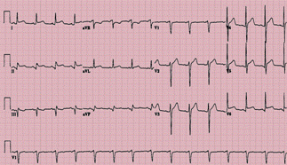 ECG normala, dar cu unde T aplatizate difuz si, eventual, cu supradenivelare ST non-diagnostica;