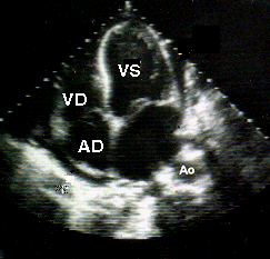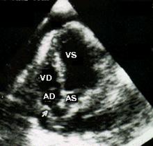 ecocardiografic: semne de umplere ventriculara limitata si de interdependenta ventriculara,