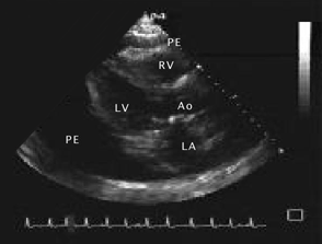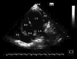 lichid pericardic in cantitate mare (evidentiaza si dispunerea topografica a acestuia),