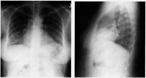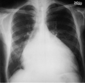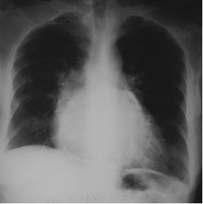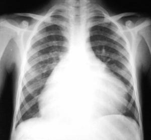 radiologic: cord de dimensiuni normale cu contur net trasat, eventual cu calcificari pericardice si circulatie pulmonara normala,