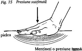Presiunea se aplica in mod gradat, in trei trepte - usoara, medie si puternica, cu o pauza intre treapta a doua si a treia (fig. 14).