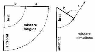 antebratul descrie un unghi fata de brat si concomitent bratul descrie un unghi fata de