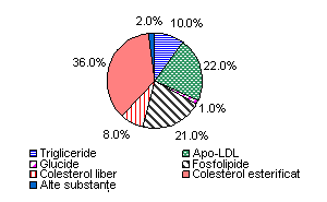 Pentru LDL, din punct de vedere biochimic se descrie o heterogenitate structurala, generata in special de compozitia variata a apoproteinelor (apo-LDL). In mentinerea integritatii structurale si functionale a LDL si a interactiunii dintre particulele LDL un rol important revine apo-B100 din structura lor. Aceasta apolipoproteina sub aspectul concentratiei creste cu varsta in cazul femeilor, fenomen nesemnalat la barbati. Din totalul plasmatic al apoproteinei B la indivizii normolipemici 90% este reprezentata de apo-B din compozitia LDL (72 mg%).