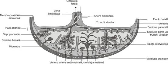 Fig. nr.204. Schema placentei mature ( adaptat dupa Moore [10])