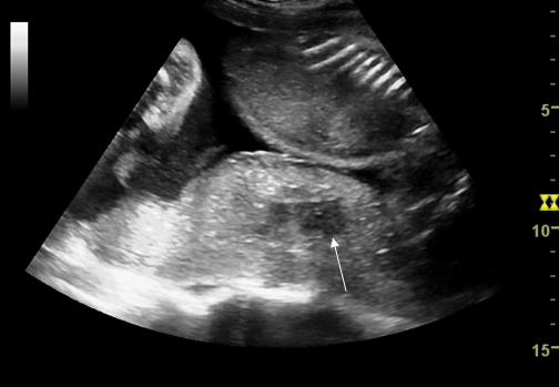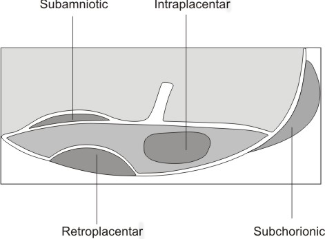 Hematomul subamniotic - arie hemoragica anecogena pe suprafata placentei ce proemina spre cavitatea amniotica.