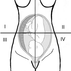 Fig nr.230. Schema impartirii in cele 4 cadrane pentru masurarea indicelui Phelan de lichid amniotic[12]