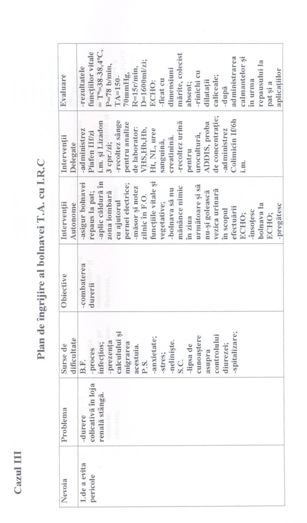 Plan de ingrijire nursing al bolnavei T.A. cu I.R.C.