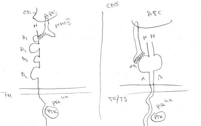 CD4 se afla in contact fizic cu o enzima (proteintirozinkinaza - PTK1). Varietatea tipica pentru TH e PTK p56lck