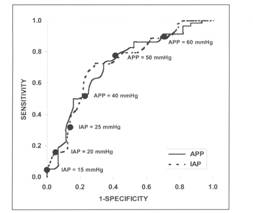O IAP de 9 mm Hg a avut cea mai buna sensibilitate (65%) si specificitate (72%) pentru stabilirea prognosticului pacientului, totusi aceasta valoare a IAP poate sa fie nerealista pentru o populatie de pacienti cu stare mult mai grava. Cum numai 18% din pacientii din acest studiu au avut semne de IAH si numai 2% au avut ACS (definit ca IAP>20 mm Hg), rezultatele acestui studiu sugereaza faptul ca APP se poate folosi ca endpoint al resuscitarii nu numai la pacientii cu IAH sau ACS, ci si la categoria mai larga a tuturor pacientilor din Terapie Intensiva.