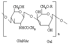 Catena oligoglucidica poate contine cel putin 2-3 unitati glucidice, oze sau derivati ai acestora: galactoza, glucoza, manoza, acizii sialici (acizii N-acetil neuraminici), fucoza, N-acetilglucozamina, N-acetil galactozamina, xiloza.