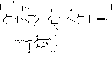 GM1 = ceramida + Gluβ 1-1) +Galβ(1-4) Nana (2-3) + GalNAc β(1-4) + Galβ(1-3)