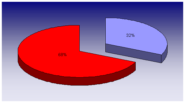 Din tabelul 3.3.7, grafic 3.3.7 (Acuitatea vizuala initiala la tot lotul de pacienti), si tabelul 3.3.14, grafic 3.3.14 (Acuitatea vizuala finala la tot lotul de pacienti) constatam ca doar 30 de pacienti (31,9 %) din lotul studiat au ramas dupa tratament cu o acuitate vizuala mai mica de 1/10 fata de 58 (61,7 %) de pacienti inainte de tratament si 64 (68,1 %) din lotul studiat au ramas dupa tratament cu o acuitate vizuala mai mare de 1/10 fata de 36 (38,3 %) inainte de tratament.