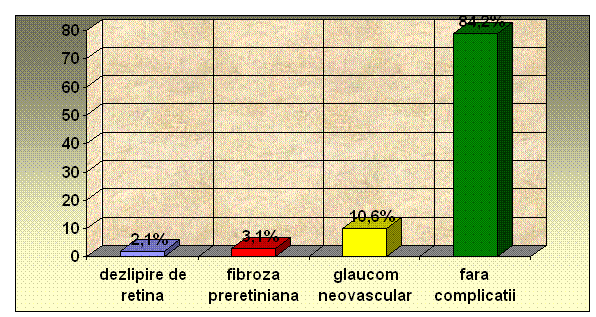 Fibroze preretiniene: trei pacienti au prezentat intr-un stadiu tardiv o fibroza maculara preretiniana.