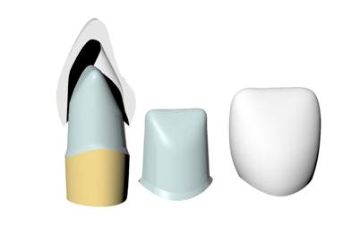 In aceasta situatie, aplicarea principiului telescopic necesita timpi aditionali minimi, deoarece, de obicei, nu sunt necesare faze clinice si de laborator aditionale, decat pentru realizarea coroanei primare. La sfarsitul fazei de pregatire, ramane o mezio-inclinatie a pilierului distal care nu concorda cu axa de insertie a dintilor limitrofi meziali. Construirea unei cape primare care sa restabileasca omogenitatea axelor de insertie reprezinta o solutie simpla, rapida si sigura.