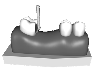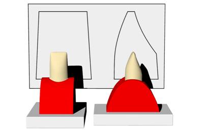 In cazul in care pilierul inclinat este constituit doar din restul radicular al unui dinte rezecat, dimensiunile extrem de reduse ale dintelui limitrof nu permit nici o reducere ulterioara in scopul obtinerii paralelismului. Acesta va putea fi obtinut prin construirea unei coroane primare pe acelasi ax cu ceilalti pilieri, ceea ce va permite realizarea unei proteze dupa tehnicile conventionale