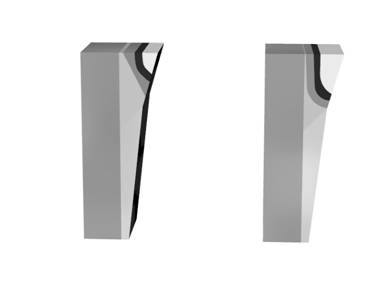 Pentru a mari la maxim valoarea suprafetelor paralele, se poate recurge la morfologia prin praguri suprapuse, cu diametru micsorat progresiv, in care fiecare segment este perfect cilindric (fig. 3-2 a, b, c, d, e). Astfel, pentru a mari la maxim valoarea suprafetelor paralele, este posibila transformarea desenului capei primare (fig. a) intr-o morfologie cu cilindri suprapusi, cu diametrul micsorat progresiv (fig. b, c, d). Suprafata interna a coroanei secundare (fig. e) va reflecta in mod evident desenul superficial al capei primare.