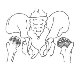 in cazul unui tratament neadecvat vindecarea se produce cu deformarea accentuata a capului femural, care are aspect "de basca" sau "tampon de vagon";