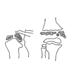 capsula articulara, cartilajele, ligamentele si celelalte tesuturi moi periarticulare nu au expresie radiologica proprie in mod normal;
