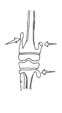 nucleii epifizei de la nivelul unghiurilor anterioare a corpilor vertebrali nu apar;
