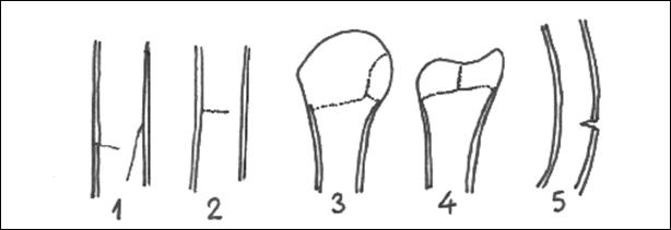la limita diafizo-epifizara se poate observa o linie transversala opaca, groasa de citiva mm, care reprezinta cicatricea cartilajului de crestere;