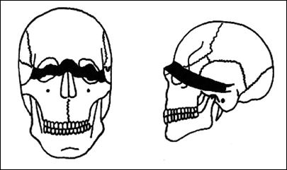 conturul extern al compactei are o delimitare neta, conturul intern fiind mai putin precis delimitat, cu aspect sters;