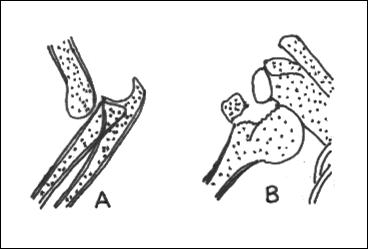 tra-veelor, cu deformarea capului femural in "tampon de vagon" sau