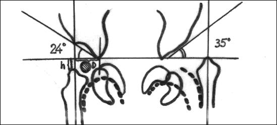 distanta h (normal de 6 mm) lipseste din partea luxata ;