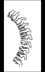 aparitia de cifoza cu raza mare de curbura.