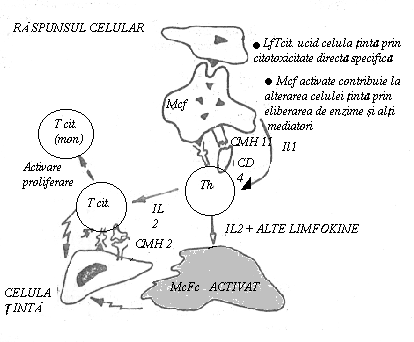 Necesita doua semnale. Semnalul specific este eliberat de Atg. expus impreuna cu molecula CMH de clasa I pe o suprafata celulara prezentatoare si este receptionat de celulele T cit. prin intermediul complexului Ti+CD Activarea mediata pe aceasta cale este specifica. Al 2-lea semnal este furnizat de IL2 secretata de LFTh prin mecanismul descris mai sus. Tintele LfT cit. sunt celule infectate cu virus sau celule straine care sunt distruse printr-un efect citotoxic direct.