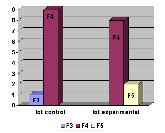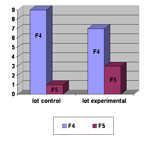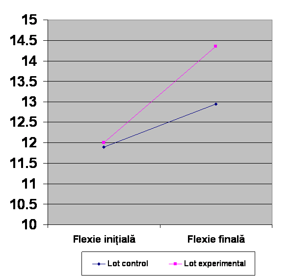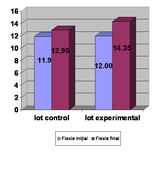Din graficul nr. 5 reiese ca programul kinetic aplicat celor doua loturi a dus la inregistrarea urmatoarelor rezultate in cadrul testarii musculaturii flexoare a coloanei vertebrale: