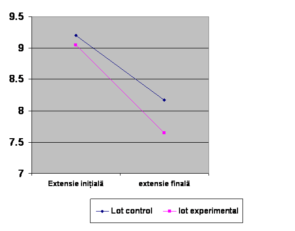 Din graficul nr. 6 reiese ca programul kinetic aplicat celor doua loturi a dus la inregistrarea urmatoarelor rezultate in cadrul testarii musculaturii extensoare a coloanei vertebrale: