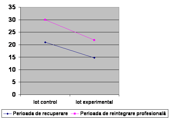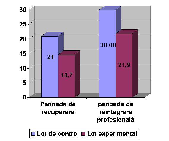Perioada de reintegrare in activitatea profesionala este mai scurta la pacientii lotului experimental decat la pacientii lotului de control.