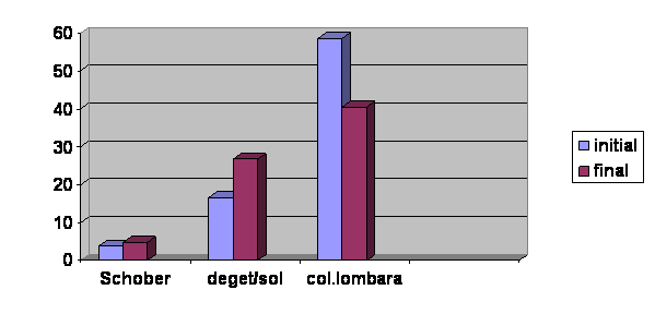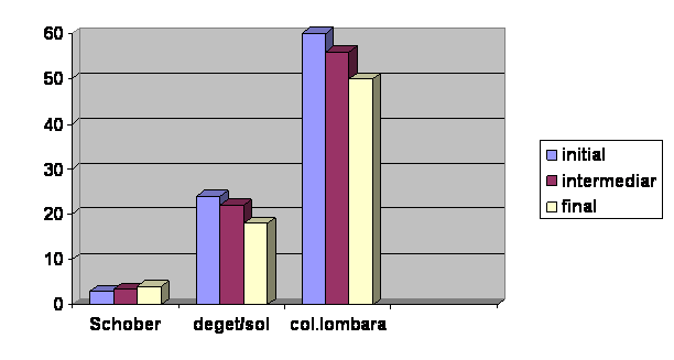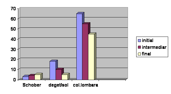 exagerarea de curbura lombara s-a redus in medie cu 18,5 mm.,