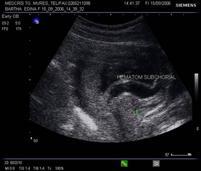 Fig nr 72 Hematom subchorial organizat , la o sarcina oprita in evolutie