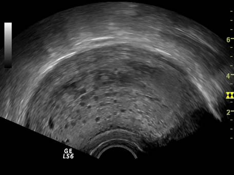 Ecografia vaginala indica o structura hiperecogena miometriala in care apar zone bine definite hipoecogene reprezentand locul necrozei hemoragice.