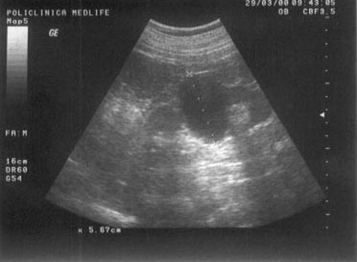 Figura 2. Chist renal stang situat in treimea medie