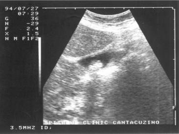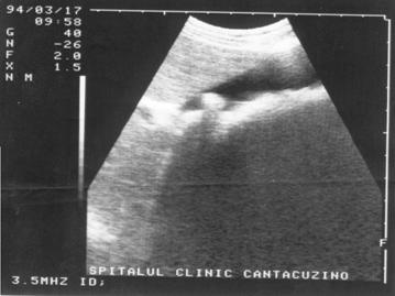 Figura 19. Con de umbra posterioara in litiaza biliara