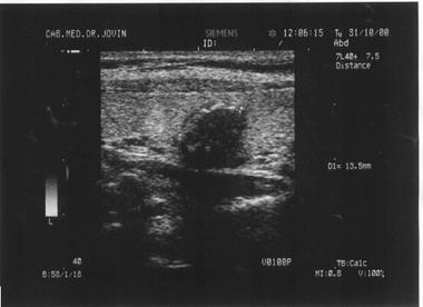 Figura 11. Imagine hipoecogena la nivelul tiroidei