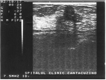 Figura 12. Imagine hipoecogena la nivelul sanului