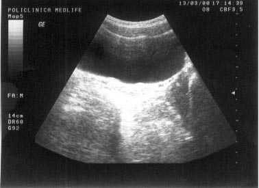 Figura 16. Intarire acustica posterioara la nivelul vezicii urinare.